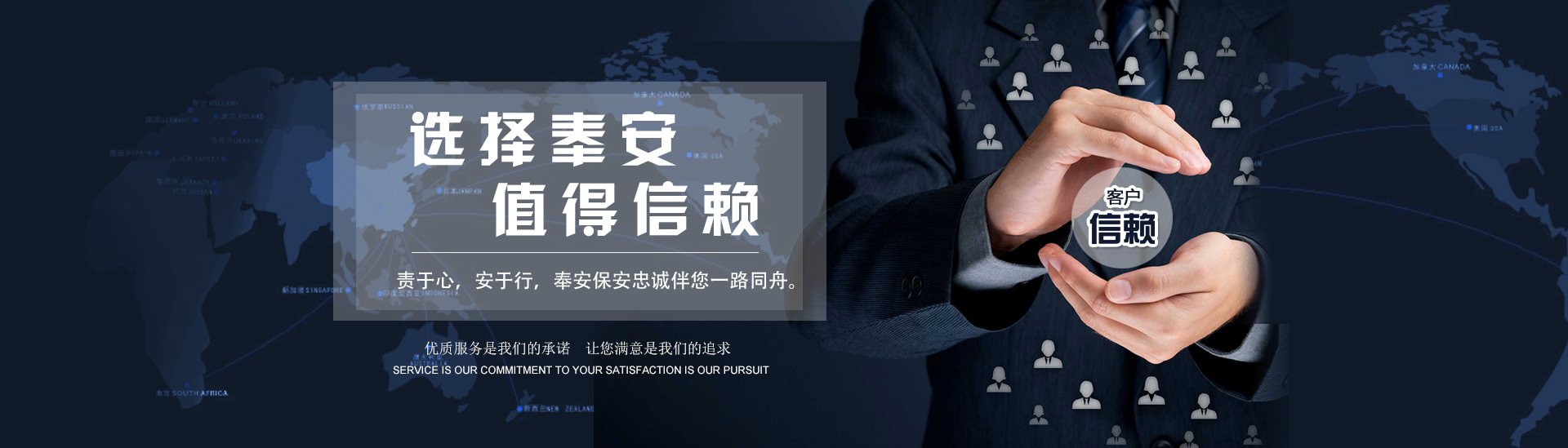 以客為尊 :客戶是公司生存和發(fā)展的決定因素,沈陽奉安保安服務有限公司堅持以客戶為上帝的經營理念,全力貫徹“以客為尊、以誠待客”的服務宗旨